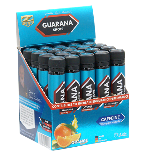 I Guarana 1.800 Shot har vi använt det bästa kvalitetsguaranaextraktet, vilket innebär en högre koffeinhalt och bättre smak. Den flytande formen möjliggör snabbare absorption än en tablett eller kapsel, med en långvarig effekt. Formeln är berikad med vitaminerna B1, B3 och B6 för ytterligare energi.